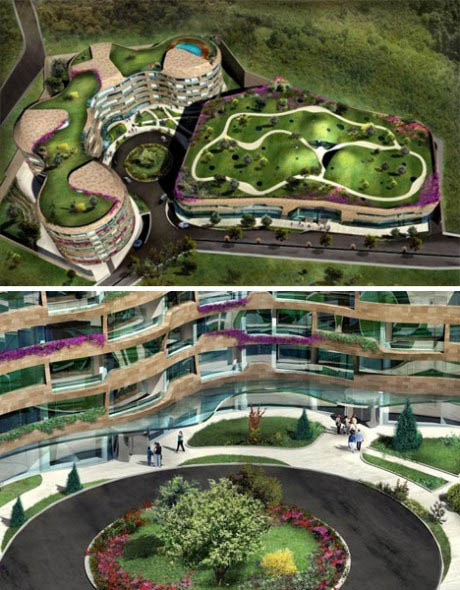 英國薩里地下綠化帶酒店 英國薩里赫斯哈姆高爾夫俱樂部的地下五星級酒店由ReardonSmith建筑師事務所設計,酒店內建有豪華溫泉會所以及高爾夫設施。為了防止不必要的土地開發,英國建立了綠化帶。通過棲身地下這種方式,這家五星級酒店滿足了有關城市發展的限制條件。此外,這一設計也同樣能夠降低對交通流量的影響。由于地上建筑棲身于現有林地之內,附近當地居民的視野不會受到影響,可以盡情欣賞那不可觸摸的自然景色。 10.北京創意區綠化帶