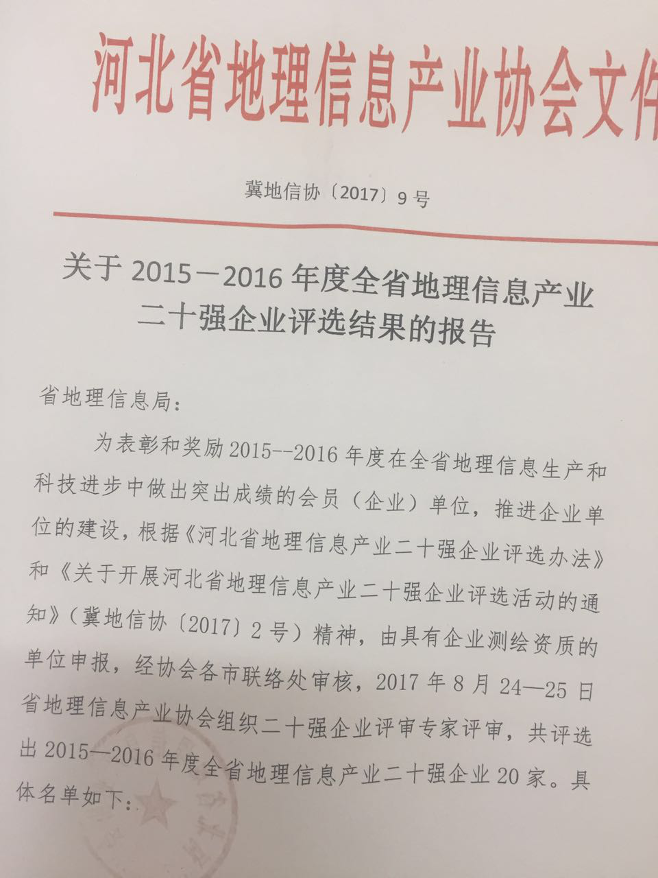 參觀時(shí)我去聽取了宣處長(zhǎng)講話,局里領(lǐng)導(dǎo)對(duì)我單位高度認(rèn)可,今年我單位參加了《2015-2016年度全省地理信息產(chǎn)業(yè)二十強(qiáng)企業(yè)評(píng)選》,很榮幸評(píng)上2015-2016年度全省地理信息產(chǎn)業(yè)二十強(qiáng)企業(yè),對(duì)于以后的測(cè)繪工作,我們單位也會(huì)再接再厲,努力創(chuàng)出更多佳績(jī)。