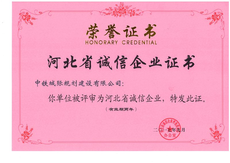 長期以來,中鐵城際規劃建設有限公司始終高度重視契約精神,守法經營、守合同重信用,以誠信經營促進企業的發展壯大。