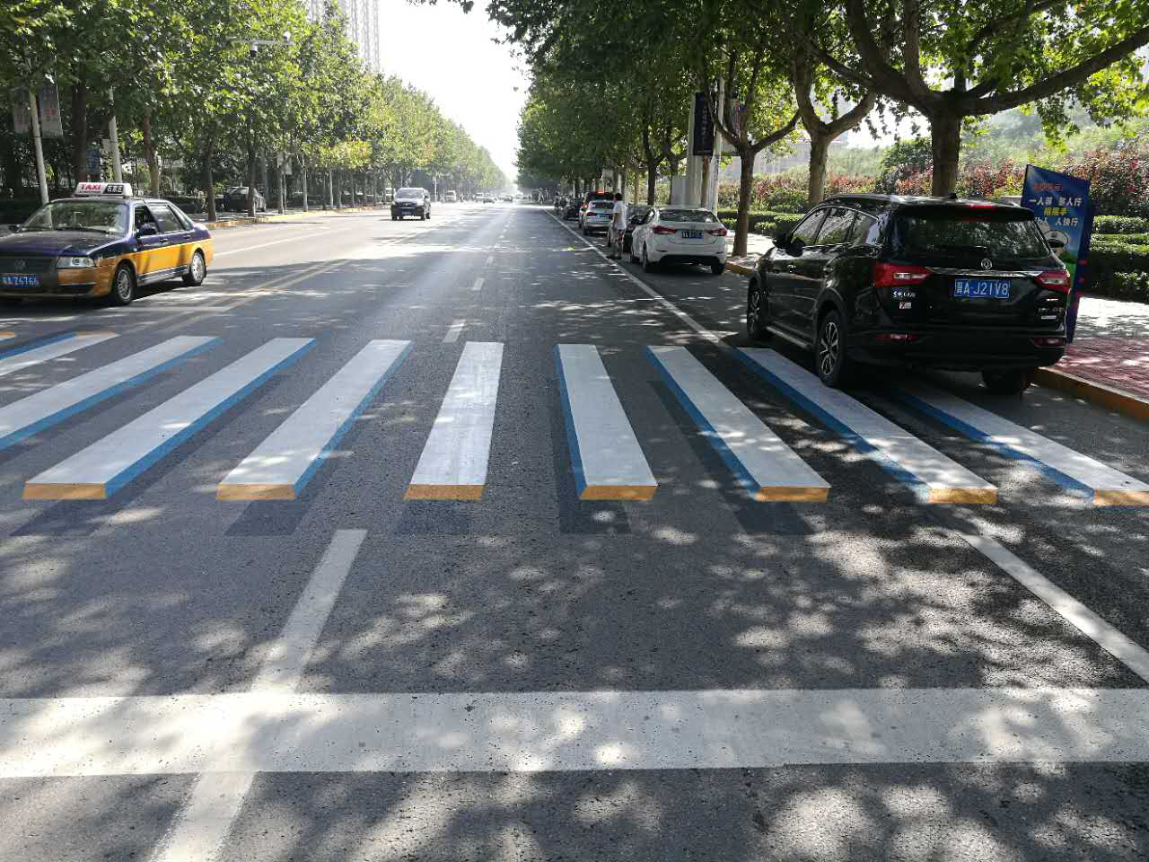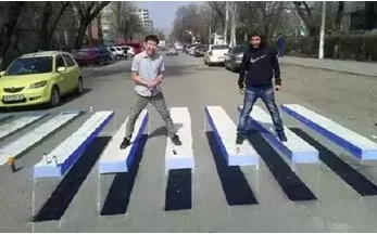 沒錯(cuò),不是你眼花了,這是石家莊城區(qū)首次規(guī)劃的3D立體斑馬線,以前只看過3D電影,玩過3D游戲,3D斑馬線還是頭一次見。石家莊的首條3D斑馬線亮相塔南路(建華大街-翟營南大街)南王學(xué)校門口,3D斑馬線由黃白藍(lán)三色組成,立體感十足,給普通的白色斑馬線加上“陰影”的理念,使斑馬線“站”起來,給交通參與者帶來不小的視覺沖擊。不少司機(jī)以為遭遇了“路障”,在很遠(yuǎn)的地方就下意識(shí)地減速、剎車。