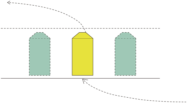 平行式停車車身方向與通道平行,是路邊停車帶或狹長地段停車的常用形式,如下圖所示。