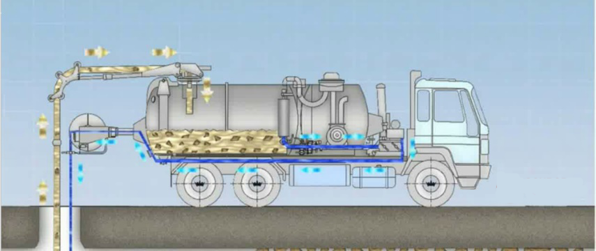 用吸污車將兩檢查井內(nèi)淤泥抽吸干凈,兩檢查井剩余少量的淤泥向井室內(nèi)用高壓水槍沖擊井底淤泥,再一次進(jìn)行稀釋,然后進(jìn)行抽吸完畢。