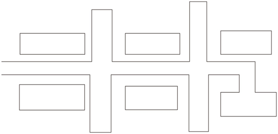 混合式布置形式同時具有環狀式和盡頭式兩種布置形式的特點。在滿足運輸的要求條件下,既能兼顧貨流、人流的通暢。又能較好的適應廠區地形、地質條件。其布置形式比較靈活,可適用于各種類型的企業,如圖所示。