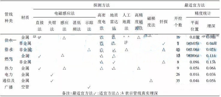 2) 金屬管線適合用電磁感應法探測,非金屬管線適合用地質雷達和釬探施工。
