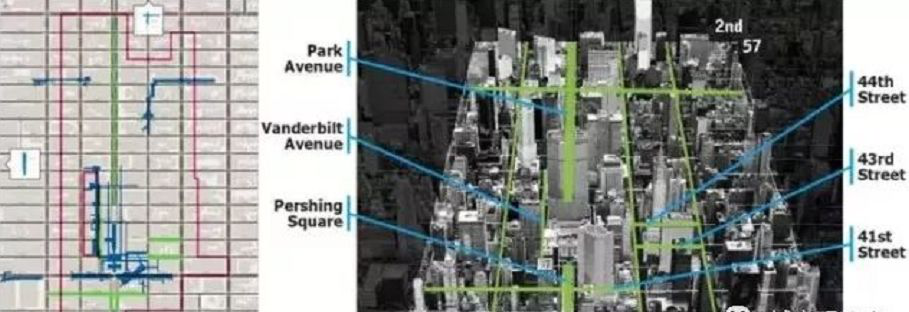 2017年8月批準(zhǔn)的曼哈頓中城East Midtown的控制性規(guī)劃修訂案將打造公共空間、營造活動場所作為核心目標(biāo),使用步行廣場、共享街道和公交走廊三種工具規(guī)劃交通空間,從公共開放空間視角重新設(shè)計街道和步道,借助城市設(shè)計手法激發(fā)街道活力,重新安排未利用空間以滿足步行者需求,重新分配街道空間以反映各類使用者真實需求。公共空間改造涉及41街、43街、44街、潘興廣場、范德堡大街和派克大街。