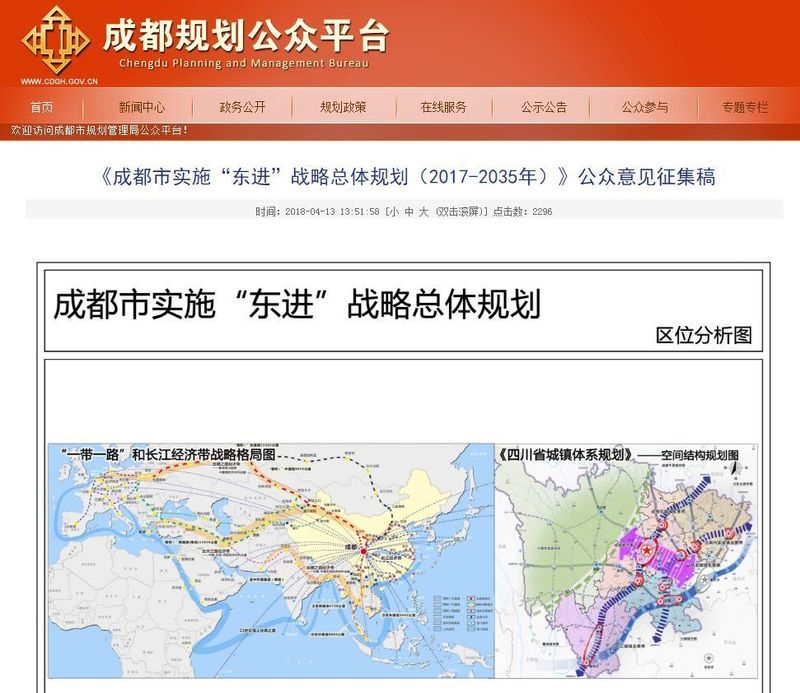 文件還顯示,2017年5月以來,成都市有關(guān)部門同步組織開展了《成都市實(shí)施 “ 東進(jìn) ” 總體戰(zhàn)略研究》和《成都市實(shí)施 “ 東進(jìn) ” 戰(zhàn)略總體規(guī)劃》兩項(xiàng)工作,近一年的時(shí)間里,結(jié)合多次會(huì)議意見及相關(guān)區(qū)(市)縣、市級部門書面反饋意見,經(jīng)過多輪修改完善,才形成今天的最新規(guī)劃藍(lán)圖。