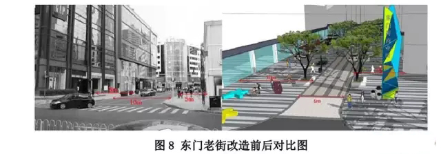 ● 東門老街:機(jī)動(dòng)車道由10 米壓縮至米,兩側(cè)人行道分別從米加寬至米,從8米加寬至10米。