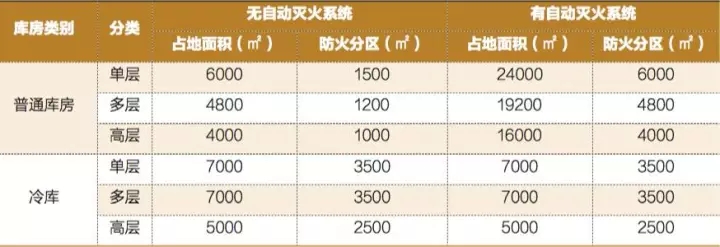 4.倉庫占地面積和防火分區(僅供一般性參考,視具體情況而定)