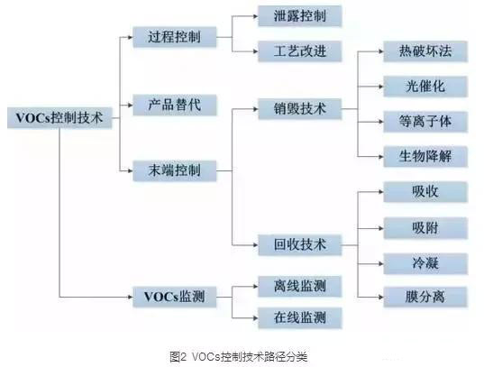 根據(jù)大氣中VOCs產(chǎn)生的原理和VOCs的理化性質(zhì),其控制技術(shù)可以分為兩大類,過程控制和末端控制。