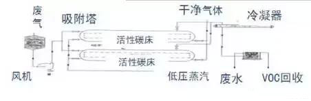 原理:利用吸附劑與污染物質(zhì)(VOCs)進(jìn)行物理結(jié)合或化學(xué)反應(yīng)并將污染成分去除