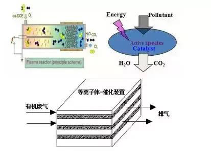 原理:等離子體場富集大量活性物種,如離子、電子、激發(fā)態(tài)的原子、分子及自由基等;活性物種將污染物分子離解小分子物質(zhì)。