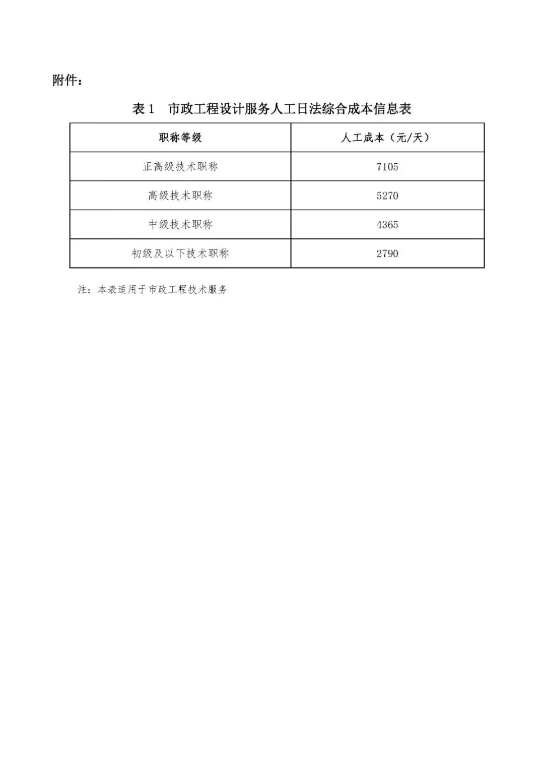表1、市政工程設計服務人工日法綜合成本信息表