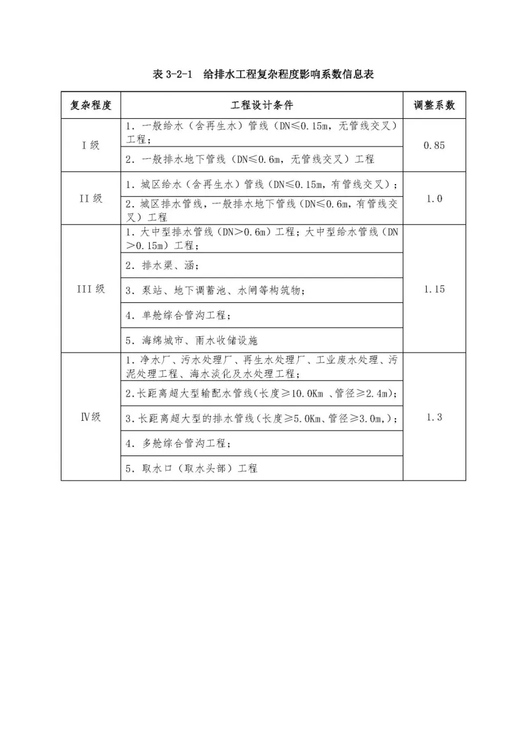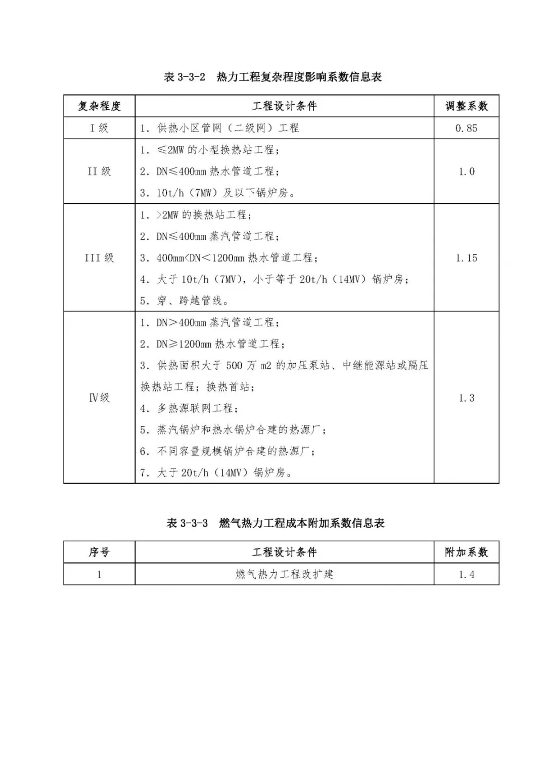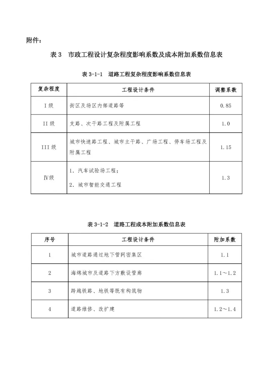 表3、市政工程設計復雜程度影響系數及成本附加系數信息表