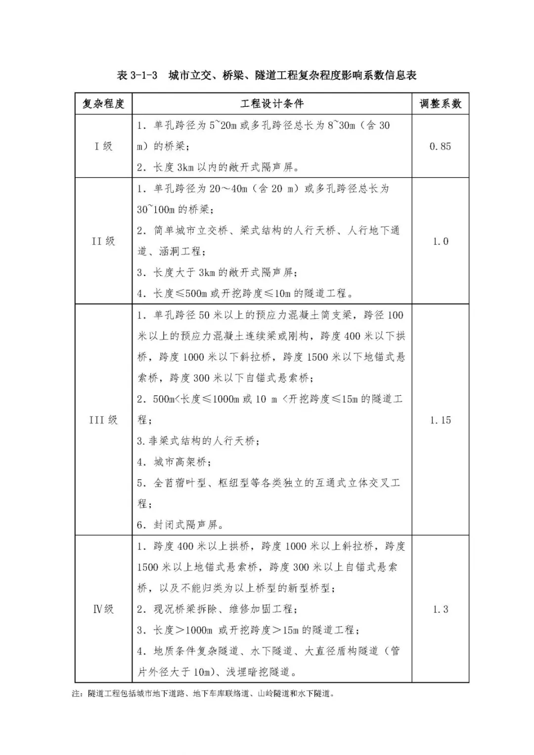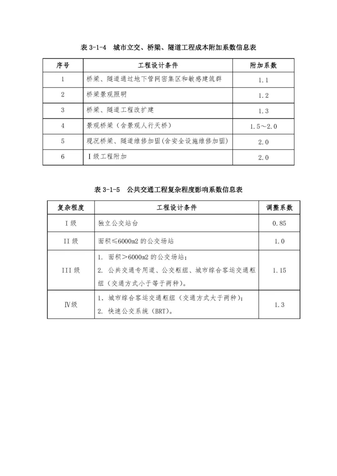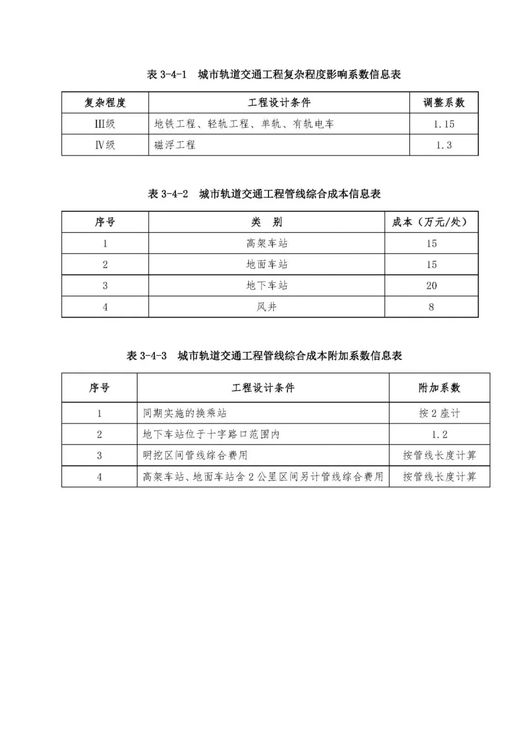表3、市政工程設計復雜程度影響系數及成本附加系數信息表