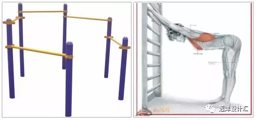 圖3.4(右) 健身器械肋木和背部拉伸運動示意