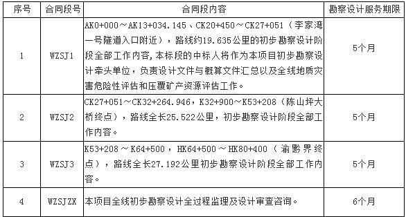 萬盛至正安高速公路重慶段啟動初步勘察設計,2019年6月4日發布了初步勘察設計及技術咨詢服務招標公告。據悉萬盛至正安高速公路重慶段劃分4個合同標段。估算總投資162.7億元,建安費約118.4億元。