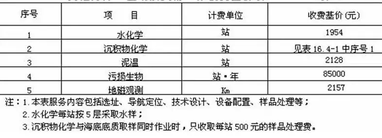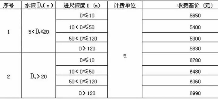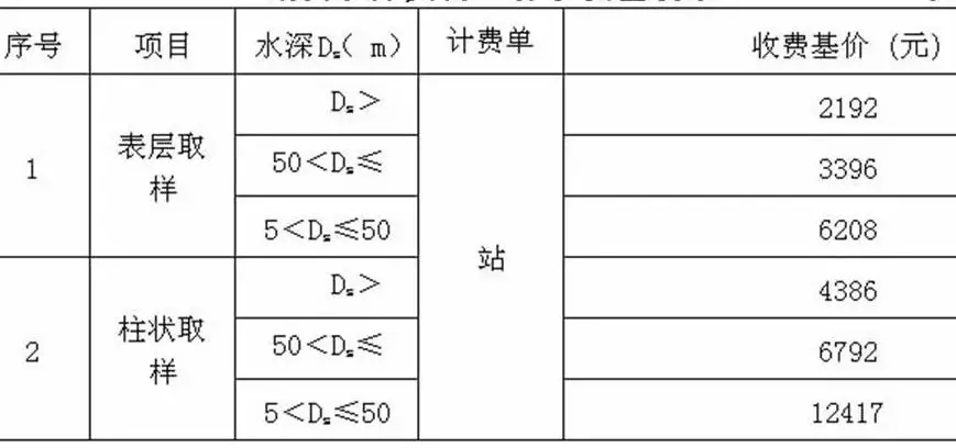 注:1.單波束測量執行通用工程勘察水域測量收費標準;