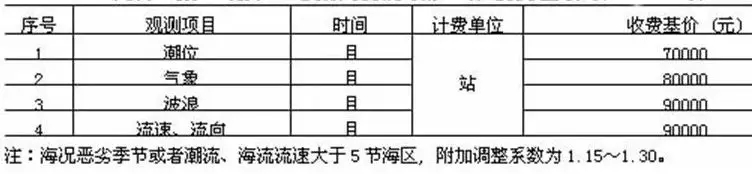 注:1.海況分級見《海濱觀測規范》;2.本表同時具備兩項及以上因素的,按照最高類別計算收費。