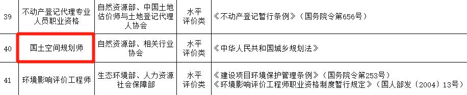 * 注2:原注冊城鄉規劃師調整為水平評價類,更名為“國土空間規劃師”;原注冊設備監理師調整為水平評價類,更名為“設備監理師”;原土地登記代理專業人員職業資格更名為“不動產登記代理專業人員職業資格”;原專業代理人更名為“專業代理師”。