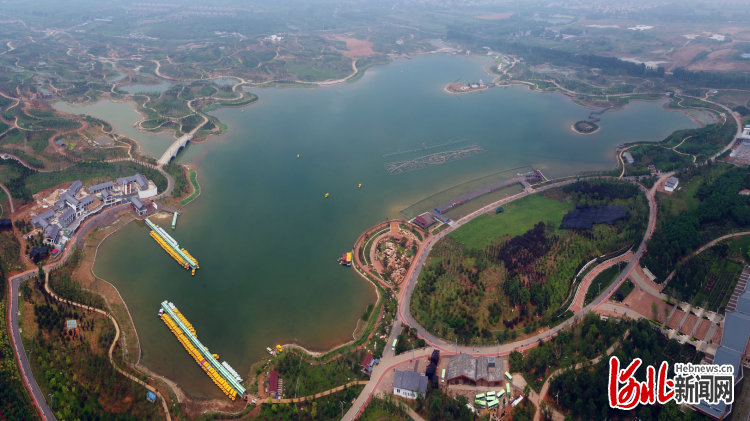 無人機拍攝的龍泉湖。近幾年,石家莊市不斷加大海綿城市建設力度,龍泉湖秉承海綿城市建設原則,增加了雨水的收集、儲蓄、遲滯功能,并采用多種方式進行合理有效的排水,為解決城市內澇問題提供新思路。 河北日報記者趙海江攝(資料片)