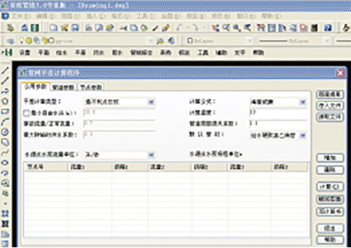 該集鎮供水工程設計供水范圍為集鎮鎮區。在選取水源,從水源取水,通過原水輸水管將原水輸送到水廠,經處理后的水通過清水輸水管送至500m3高位水池統一供水至配水管網。以下介紹該集鎮區配水管網的平差計算。圖3為鴻業市政管線軟件的工作界面。