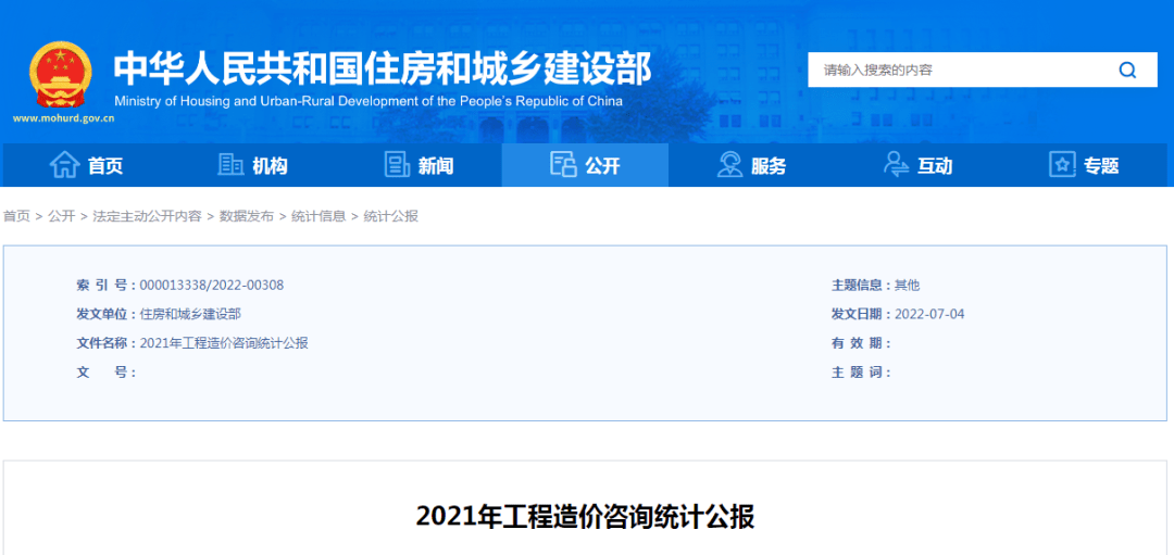 住建部發布2021年工程造價咨詢統計公報