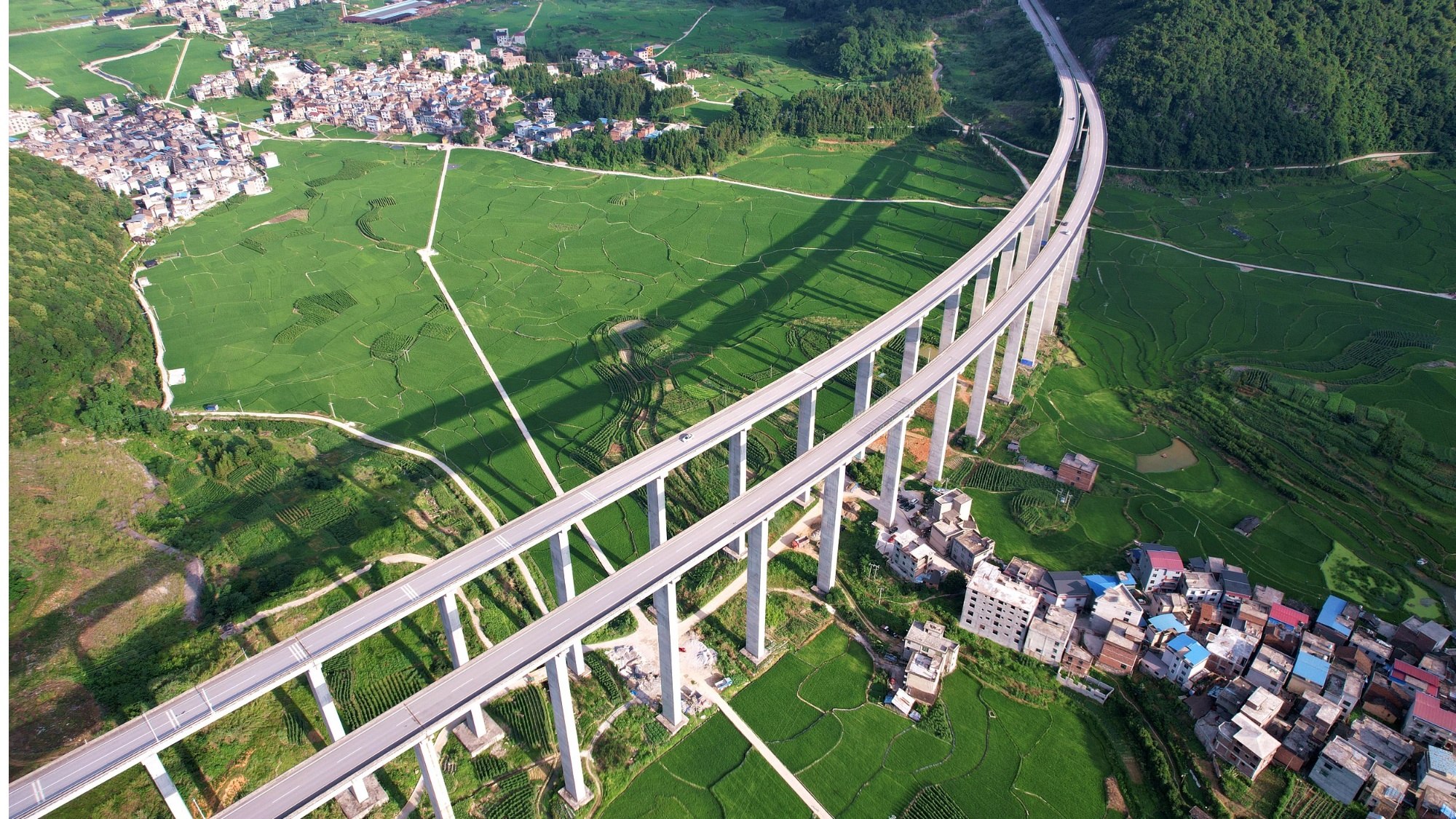 貴州從江:航拍山村風(fēng)景,公路稻田交相輝映(資料圖)