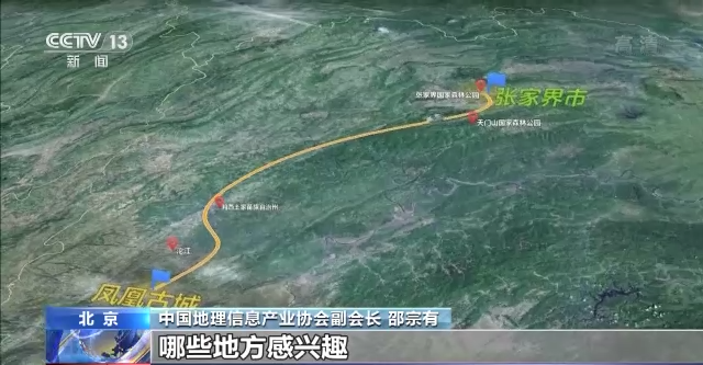 中國地理信息產業(yè)協(xié)會副會長 邵宗有:比如我們要去張家界旅游,通過它的高空數(shù)據(jù),就可以大致地瀏覽一下整個張家界景區(qū),哪些地方感興趣,你可以設計出旅游的路線。