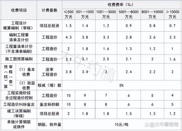 3.需要進(jìn)行鋼筋工程量精細(xì)計(jì)算的,另計(jì)取工程造價(jià)咨詢附加收費(fèi);