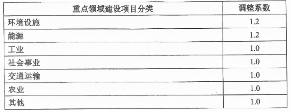表2 按建設(shè)項目估算投資額分檔收費的調(diào)整系數(shù)