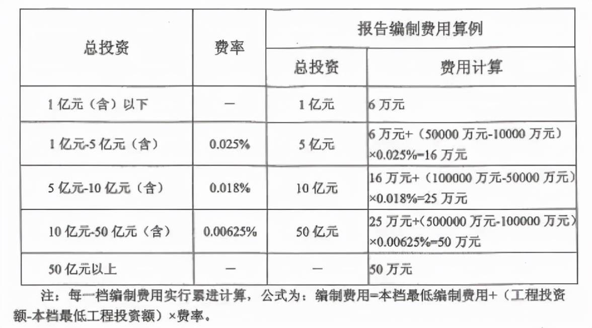 (2)評價建設(shè)項目穩(wěn)評報告的咨詢服務(wù)收費,以建設(shè)項目的估算總投資額為計費基準,根據(jù)分檔費率來綜合確定,費用范圍在4萬至25萬元(詳見表5);