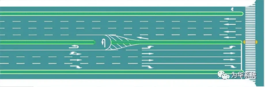 圖6 縮小機非分隔帶寬度并縮小車行道寬度設(shè)置右轉(zhuǎn)專用道