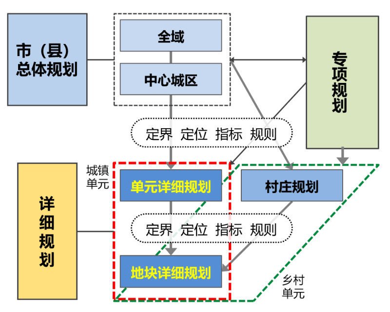 (二)統籌有序分層推進詳細規劃全覆蓋。詳細規劃分為單元和地塊兩個編制層次。單元詳細規劃以一個或多個相鄰單元為范圍編制,應編盡編,有序實現城鎮開發邊界內詳細規劃全覆蓋。地塊詳細規劃是依據單元詳細規劃、結合土地政策、針對具體項目實施而編制,強調規劃管控內容的落實和實施。兩個層次規劃可同步編制、合并報批,也可分期編制,分別報批,進而避免一次性全覆蓋帶來頻繁調整問題。