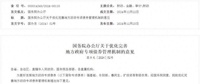 12月25日,《中國銀行保險報》記者從中國政府網(wǎng)獲悉,國務院辦公廳近日印發(fā)《關于優(yōu)化完善地方政府專項債券管理機制的意見》(以下簡稱《意見》)。