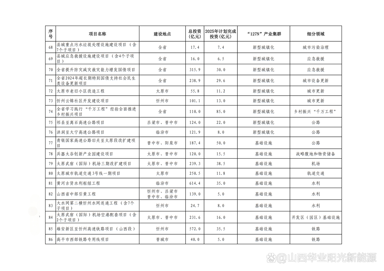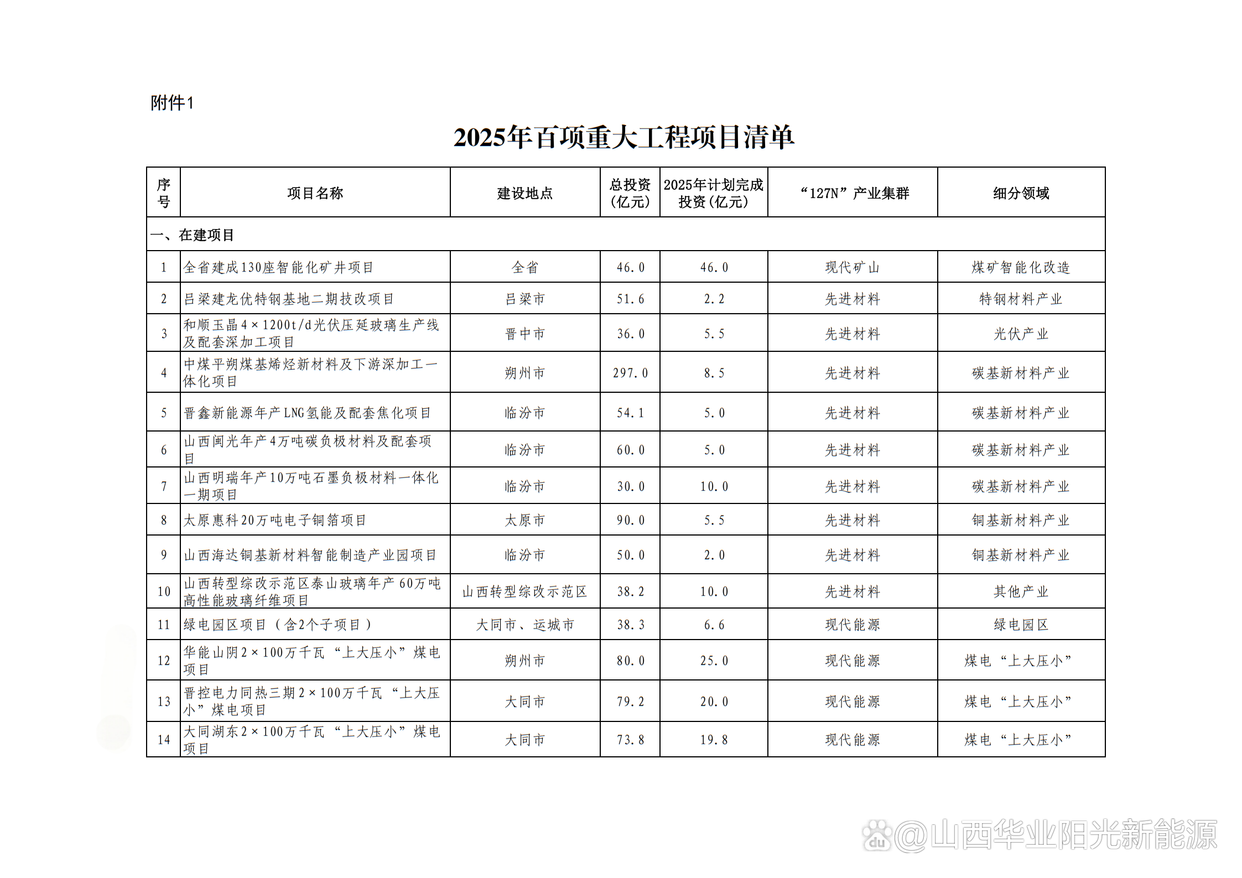 山西省2025重大項目建設年行動方案