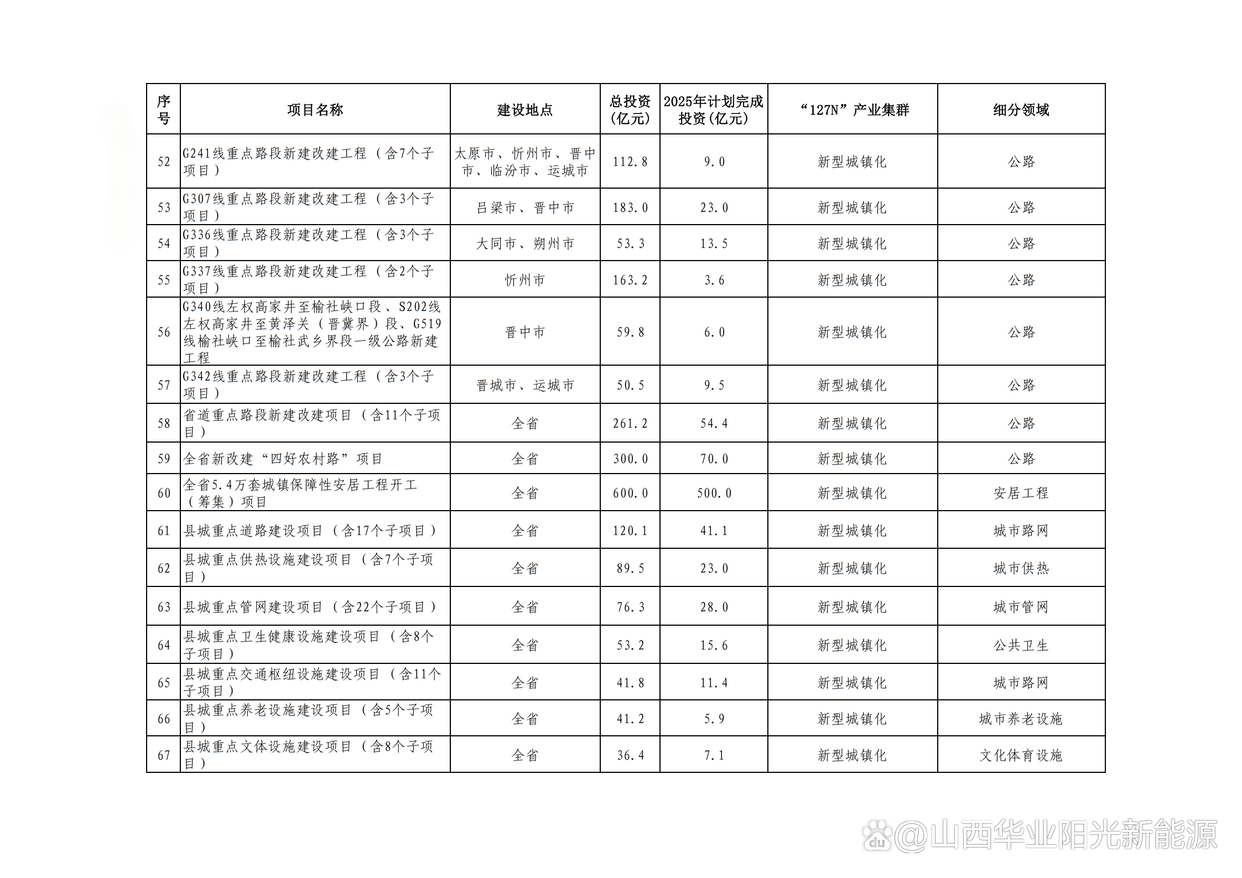 2.山西晉北新能源基地項目(含湖東“上大壓小”、同熱三期、風電光伏3個子項目),總投資553億元,年度計劃投資169.8億元,建設地點大同市。