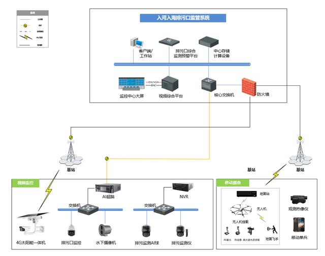 對(duì)排污口排放的受納水體采用排污監(jiān)測(cè)儀進(jìn)行水質(zhì)在線監(jiān)測(cè)。通過(guò) 4 G 太陽(yáng)能攝像機(jī)、水下攝像機(jī)等設(shè)備全天候?qū)崟r(shí)監(jiān)測(cè)排污口排污狀況,發(fā)現(xiàn)違規(guī)事件及時(shí)告警。通過(guò)無(wú)人機(jī)對(duì)河道情況進(jìn)行立體化巡查,并可搭載高光譜水質(zhì)掛載,實(shí)現(xiàn)河道水質(zhì)指標(biāo)反演。通過(guò) 單兵 、觀測(cè)熱像儀等設(shè)備 , 進(jìn)行排口移動(dòng)巡查、取證記錄 。